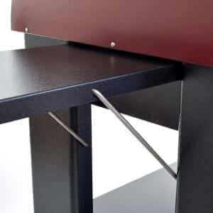 The base of the Allegro is black and comes with large foldaway shelves, a warming drawer and a firewood compartment. The 4 swivel casters with brakes make it easy to move.