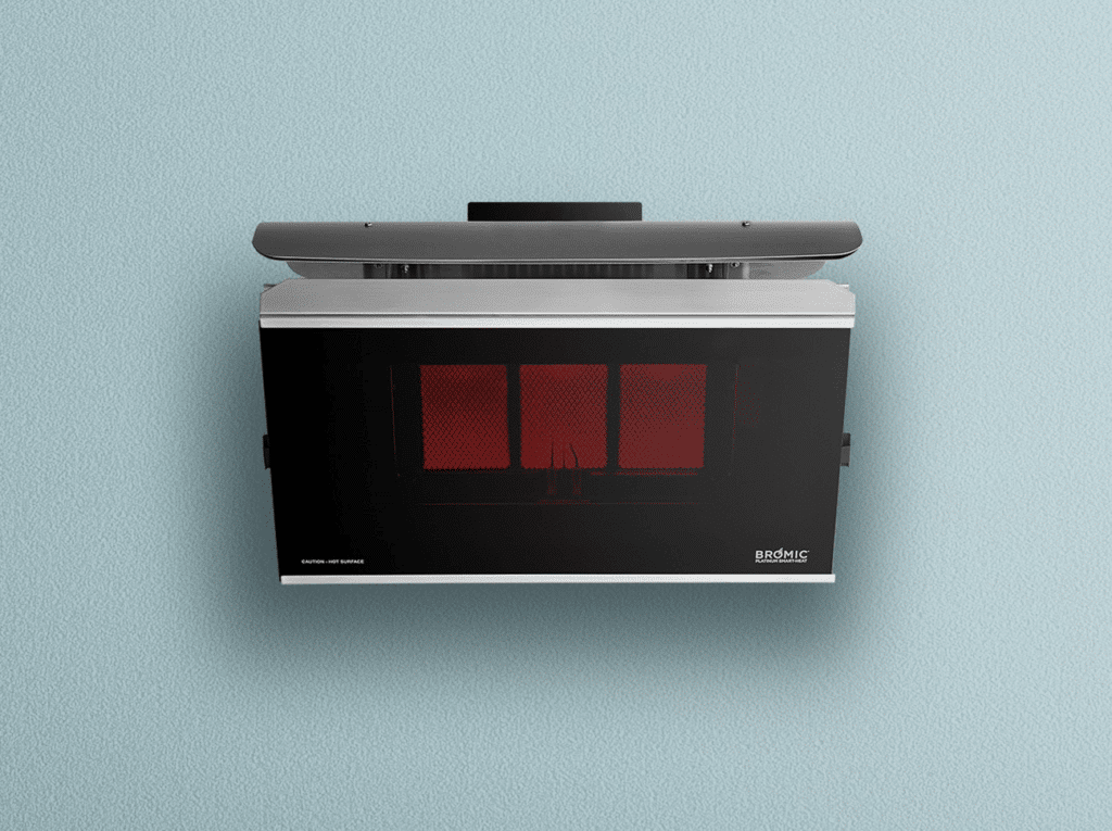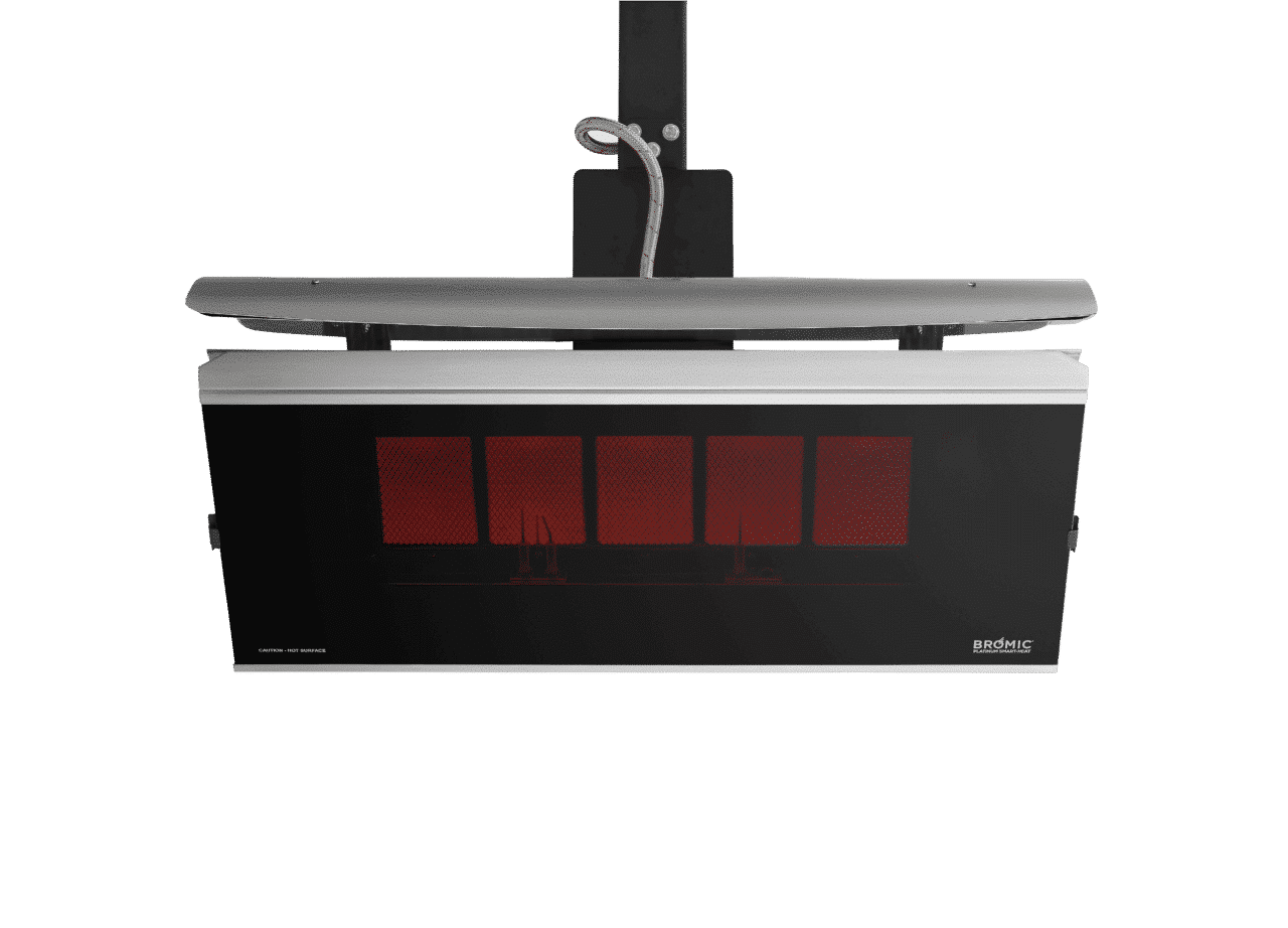 Add style and warmth to your patio, with Bromic’s Platinum Gas range. This powerful heater combines elegant design with industry-leading technology. With its signature ceramic fascia in a sleek black finish, the Bromic Platinum Gas will not only look great on your wall or ceiling, but will also quickly project radiant heat deep into your outdoor area, up to 215 square feet, while adding an extra layer of comfort with its soft red glow. The Platinum Gas series successfully overcomes winds of up to 12mph, keeping you and your guests warm in any condition.