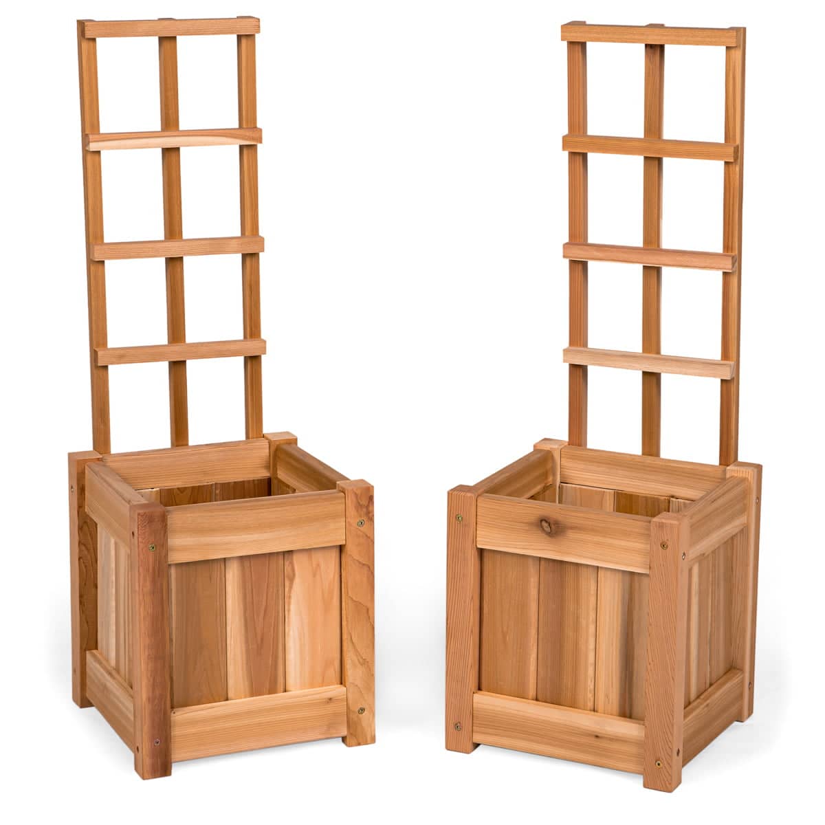 Handcrafted with Canadian grown Western Red Cedar, All Things Cedar Planter Box’s provide a stylish home for your bedded flowers or climbing plants. , Made from Canadian Western Red Cedar, Wood not treated with chemicals or preservatives, perfect for food-bearing plants, Cedar is naturally resistant to moisture, decay and insect damage, Inside Planter Dimensions: 8.75w x 8.75d x 9.5h, Overall dimensions: 11.75w x 11.75d x 34h – (full assembly required)