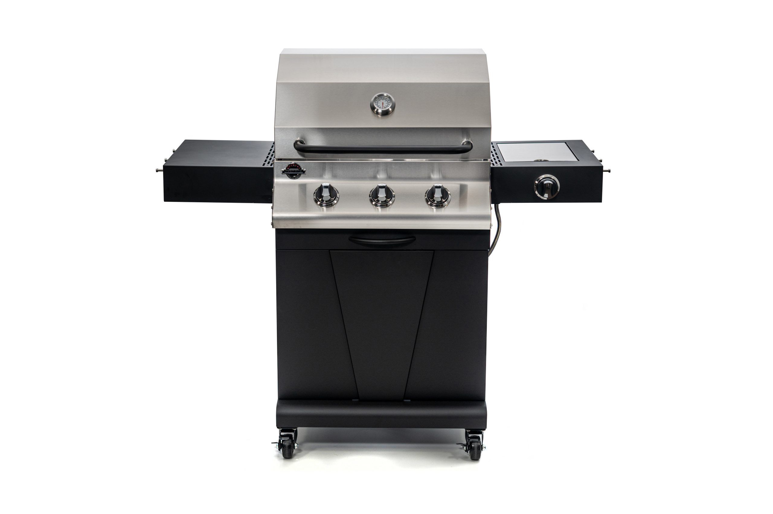 The New Keystone BLACK is Jackson Grills’ entry level series. It does not compromise on quality materials; using a stainless steel grill head, burner, grates and ALL fasteners. As with all Jackson Grills, these are designed to impress with evenly distributed searing temperatures reached in under 10 minutes. With a total grilling surface of 510 square inches (Primary: 370 sq. in. Secondary: 140 sq. in.) and an included 9500 BTU side searing burner, The Keystone BLACK 550 is perfect for the person looking to grill steaks, veggies and fish.