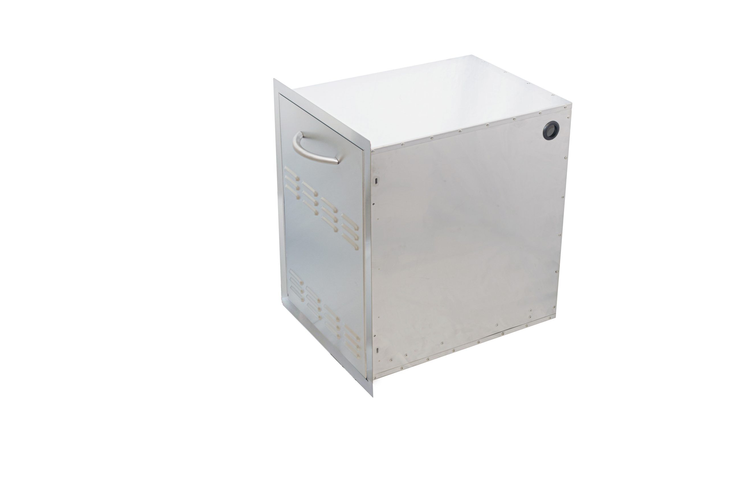 The Jackson Grills Built-In Trash Bin Holder pulls outwards on drawer glides for access to the hidden receptacle. Trash can now included!