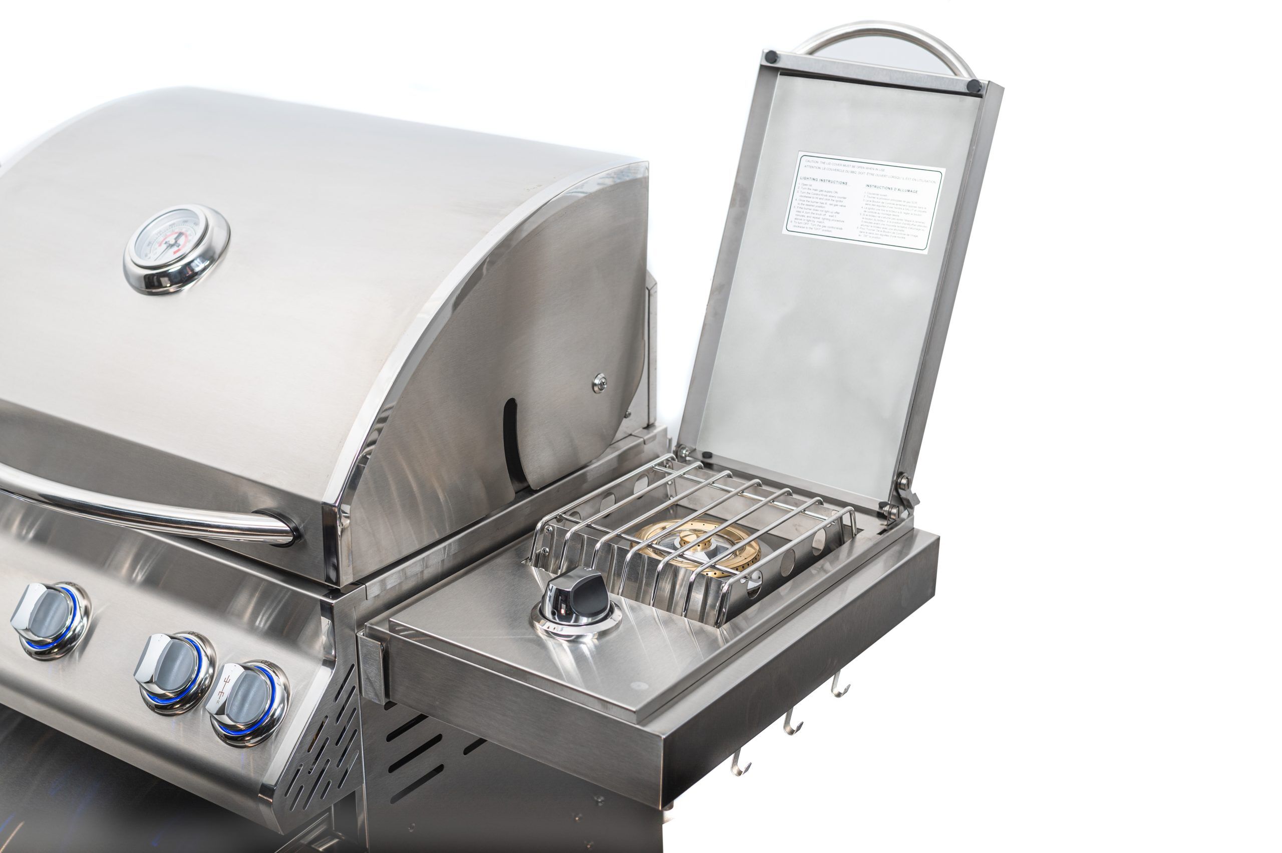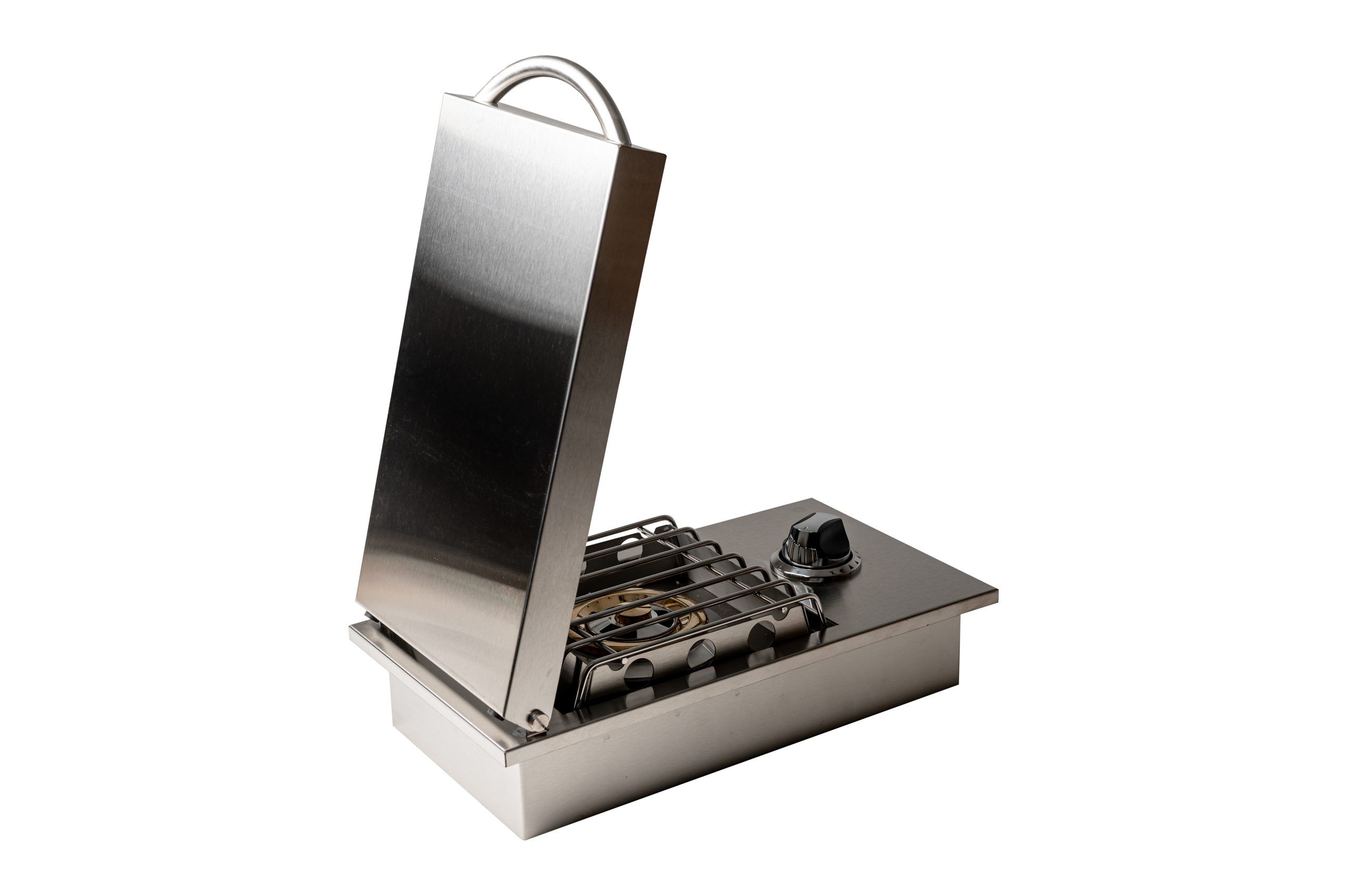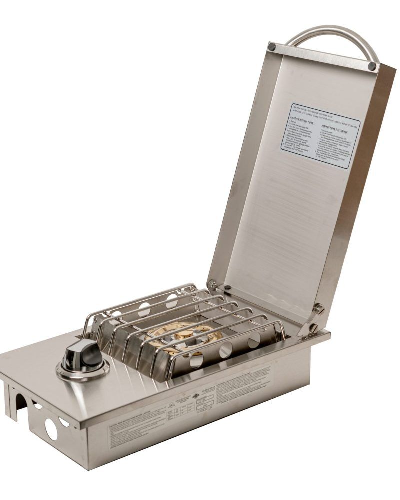 The single side burner is a 10,000 BTU cast brass, commercial grade system. Great power for your outdoor kitchen.