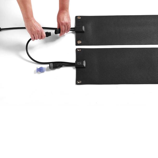 Up to 14-amps of mats can be connected to a Power Unit (sold separately). The Power Unit connects the mats to an outdoor 120V electrical outlet and gently warms the mats to melt the snow.