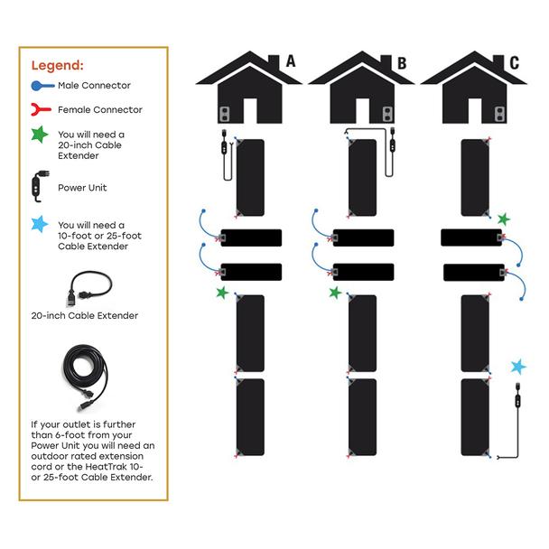 Up to 14-amps of mats can be connected to a Power Unit (sold separately). The Power Unit connects the mats to an outdoor 120V electrical outlet and gently warms the mats to melt the snow.