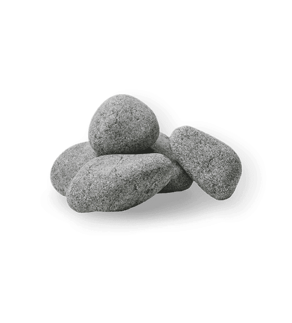 To enhance the design and create a more soothing steam experience in your HUUM heater, we suggest using rounded stones. Each box includes three different sizes of rounded olivine diabase stones: 3-5 cm, 5-10 cm, and 10-15 cm. This is done to ensure optimal stone spacing within the heater. These stones are durable and have a high heat capacity. While you can use other types of stones in HUUM heaters, we do not recommend using decorative stones as they may break easily.