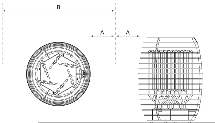 HIVE Mini is a slimmer version of the HIVE heater. While HIVE is intended for larger saunas (220 kg of stones), HIVE Mini fits up to 140 kg of sauna stones and is suitable for smaller saunas. When your sauna requires a floor mounted option, then the Hive Mini is a great option, particularly when equipped with the option WIFI control. In addition to the heater, you will need to choose a controller from the available options. The Air Tunnel is now INCLUDED with the Hive Mini, this expedites heating time and prolongs the life of the elements.