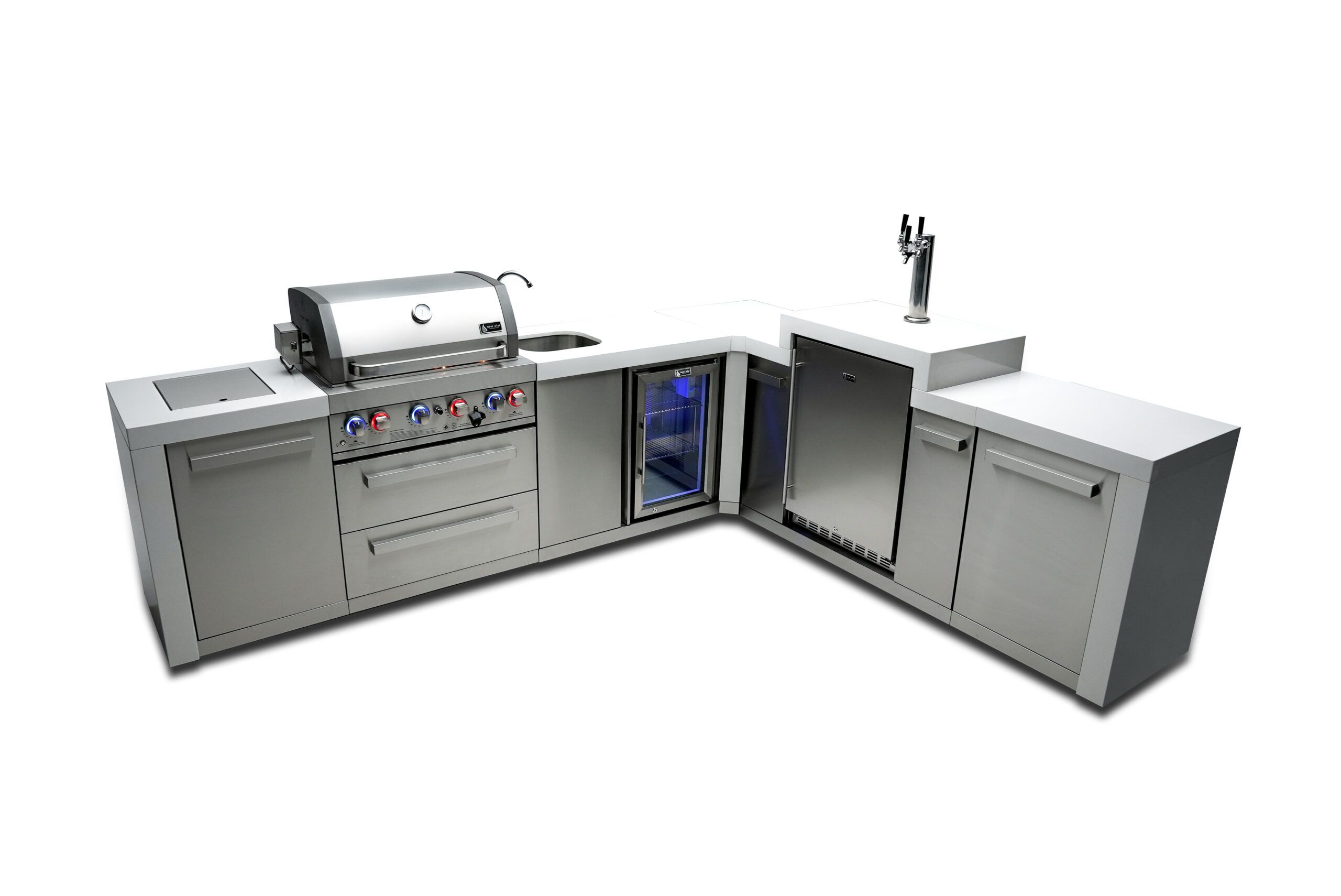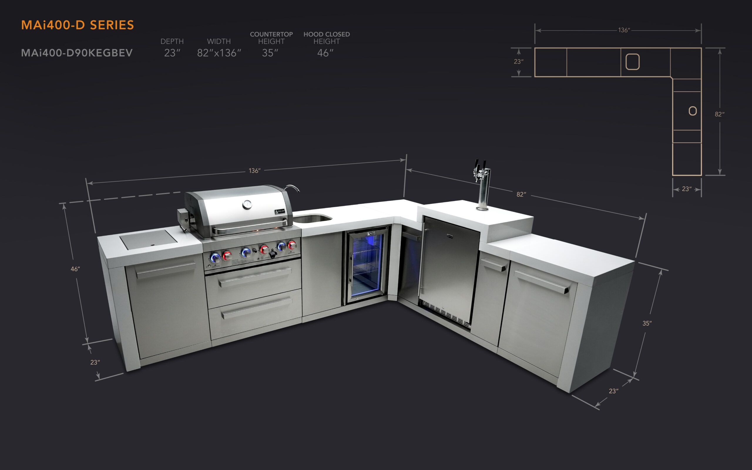 The Mont Alpi D series stands for deluxe and that is exactly what you get from the MAI400-D90KEGBEV. This grill combines four burners of standard cooking size along with an extremely useful infrared side burner suitable for searing, pan frying and boiling and an infrared rear burner for the ultimate rotisserie experience. The 90 degree kegerator module and beverage center is the perfect fit for right angles and tighter spaces, who doesn’t want a kegerator and beverage center outside, the ultimate alfresco experience.
