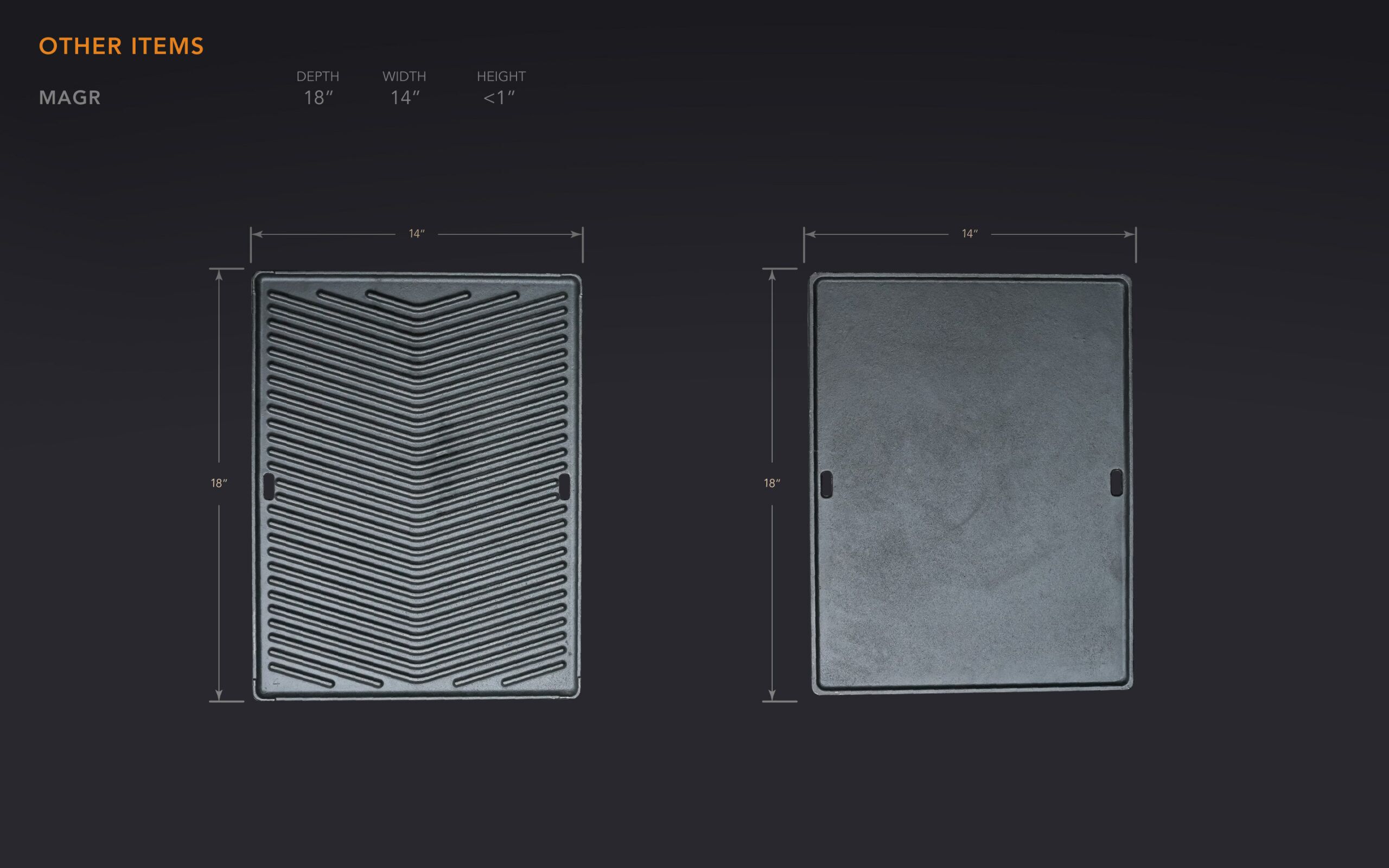 The Mont Alpi Dual sided griddle is specifically designed to fit any Mont Alpi Model, crafted in thick cast iron for heat retention and authentic griddle results. Simply remove a cooking grate and replace with the griddle. The griddle is ridged on one side for Salmon, grilled veggies and other foods that require ripples and sears, the other side is silky smooth for eggs, bacon, tacos and the ultimate smash burger. Turn your grill into a griddle in seconds and enjoy the benefits of flat top cooking on your Mont Alpi Grill. FEATURES Heavy duty