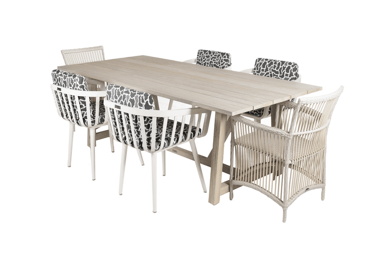 The Florence Collection is as practical as it is beautiful. The listed price includes the Dining Table and 6 Dining Arm Chairs.