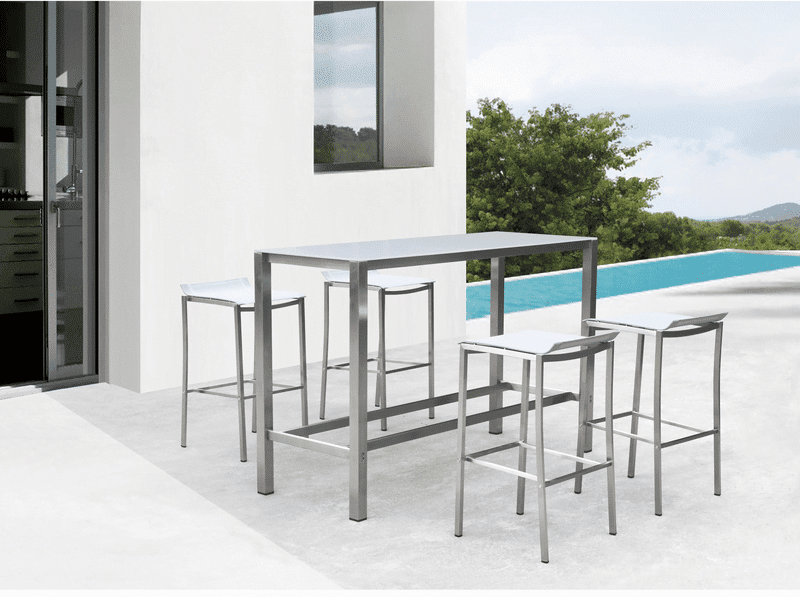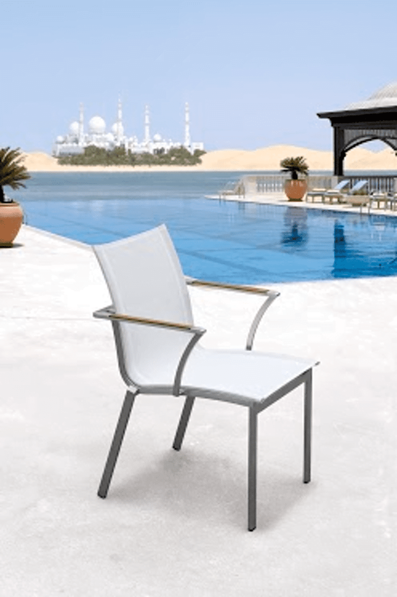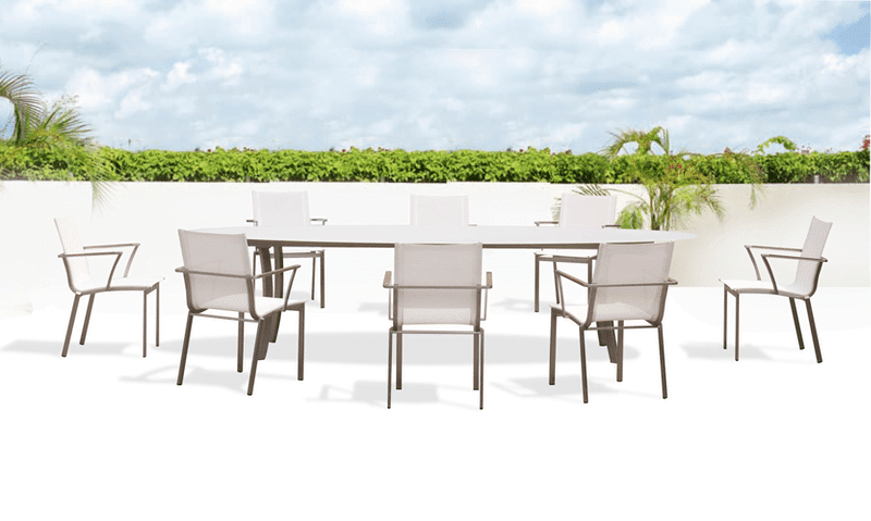 The Tiffany Collection is made from sleek stainless steel to add sophistication to any outdoor space. Posted price includes the Oval Dining Table and 8 Dining Arm Chairs.
