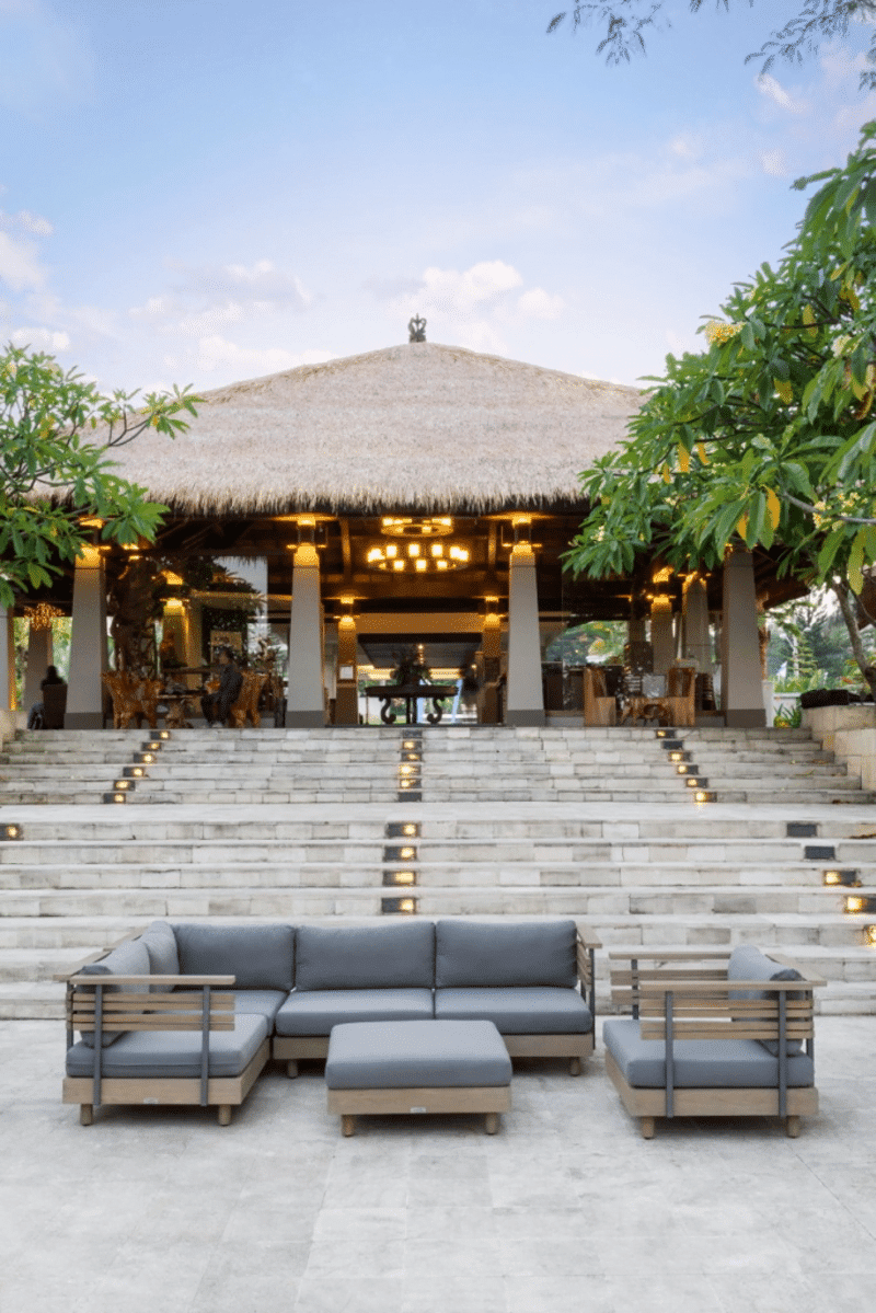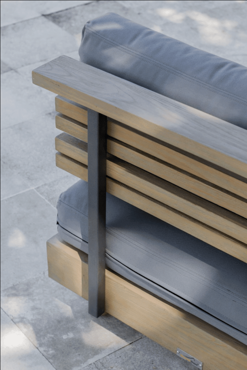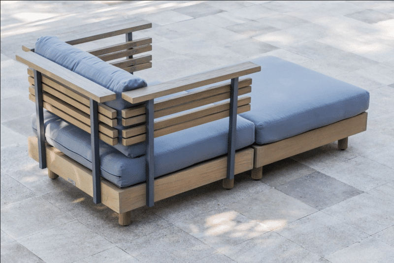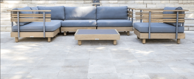 The Bahama Collection is a low profile sectional made from teak wood and brushed aluminum. Posted price includes Corner Element, 2 End Elements, Middle Element, 1 Seater Chair and Footstool.