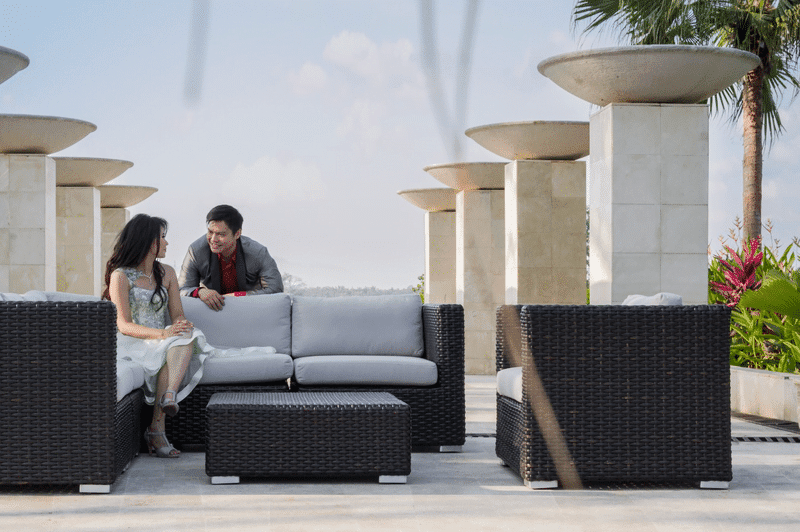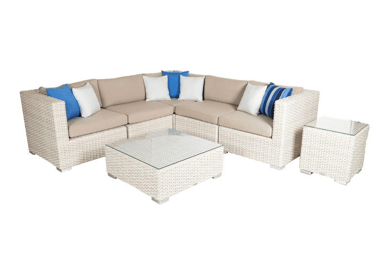 A modern collection of commercial quality puma weave with sunproof outdoor cushions. Available in Black/Brown or Ivory. Posted price includes 2 Middle Elements, 2 End Elements, Corner Element and Seater