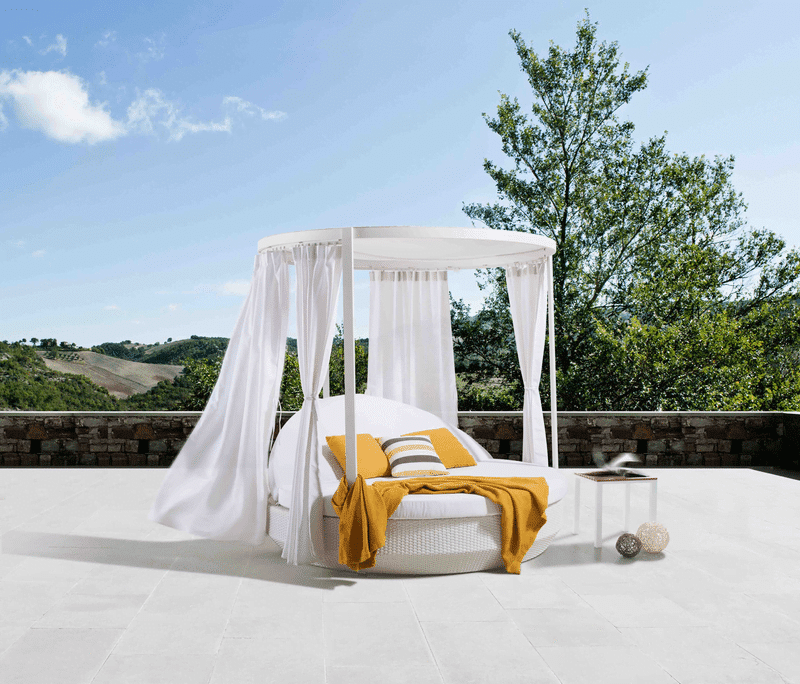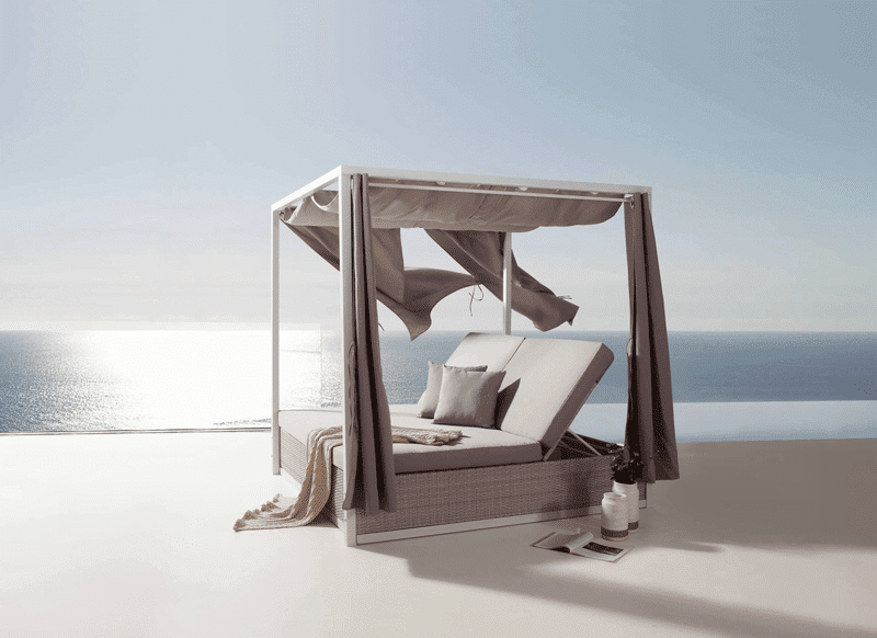 Days Beds add comfort and luxury to any outdoor space. The posted price is for the Angel II Day Bed complete with Aluminum Frame, Wicker Lower Frame, Sunbrella Taupe Fabric and Curtains.