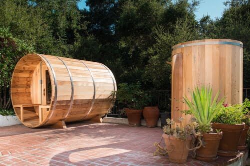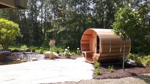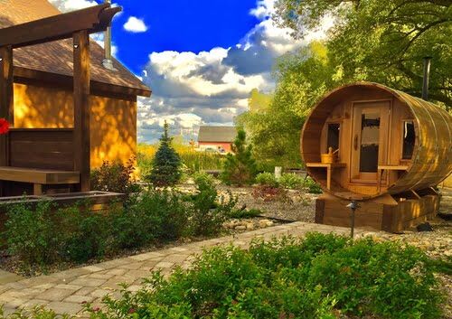 Barrel Saunas are the most classic of all the sauna styles. Their round shape creates a convection current to evenly heat the sauna, and their round shape is impressively strong when bound tight. Often used for rental saunas on trailers, these robust barrel saunas are made of thick grade A dimensional lumber. Their large thermal mass recovers quickly after the door is opened, and maintains heat even on the coldest Canadian winter days.