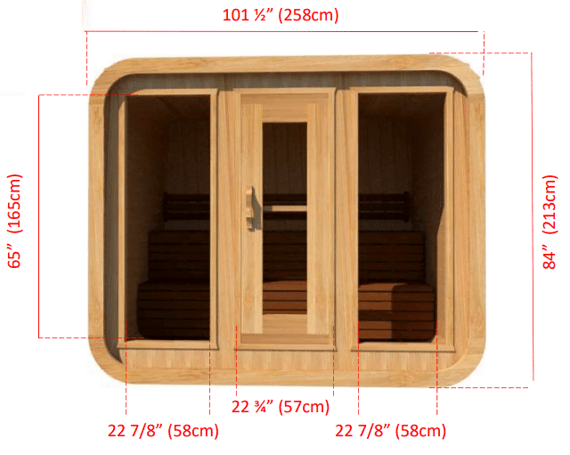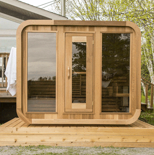 Backyard Canada’s Luna Outdoor Sauna is a a modern and unique outdoor cedar sauna for your home or cottage! The gently rounded corners not only have added appeal but gives you lots of space on the interior of the sauna. The kiln dried Canadian western red cedar is beautiful, long lasting and has that classic cedar sauna scent that we all love. This Luna comes with knotty red cedar, while clear cedar is also available. The walls, floor, and roof are all constructed of heavy duty dimensional lumber, with siding to complete the look on the sides.