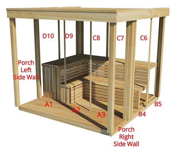 The Pure Cube CU672P is the largest Pure Cube in the series, and the P stands for Porch. This upgrade give the largest Pure Cube in the collection one more stunning feature that provides coverage and a beautiful frame for this already inspiring sauna. This stunning design has a full glass door in the middle of the front wall with various panel options you can enjoy the freedom of the outside all within this spacious model. With the full 2 Tier L Benches this model is our largest Pure Cube Sauna yet! Made in Canada for Canada, from dimensional lumber that helps to increase the thermal mass of the sauna, mean heat recovery after the door is opened is faster! Perfect for our winter, with a nice big heater, bring your family, bring your guests, to this impressive premium Canadian sauna.