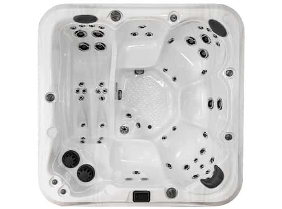 The Mount Robson M-620 by Maple Spas is destined to be one of our most popular Calgary Hot Tubs, with the right mix of lounger and chairs, this hot tub has something for everyone.The Mount Robson M-620 Spa is designed for family and group comfort with an amazing massage, with its lounger plus double captain chair design. If you are investing in a hot tub for is therapeutic massage benefits, the M-620 with the Volcano Jet is designed for you. With multiple foot holds in the lounger seat, it easily accommodates many different heights. And the vertical back of the lounger seat and the inside wall, combined to ensure you feel secure and comfortable in the lounger when the therapeutic jets are on full blast, allowing you to relax and enjoy!