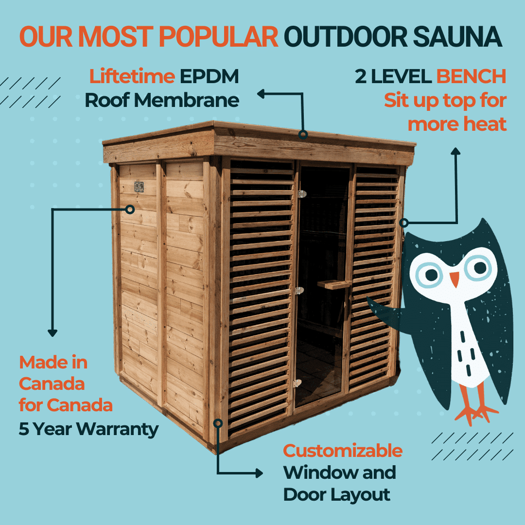 Please contact us at orders@backyardcanada.ca to discuss your sauna needs, and the various sauna and heater options available. We deliver across Canada.