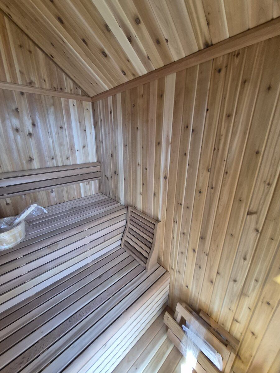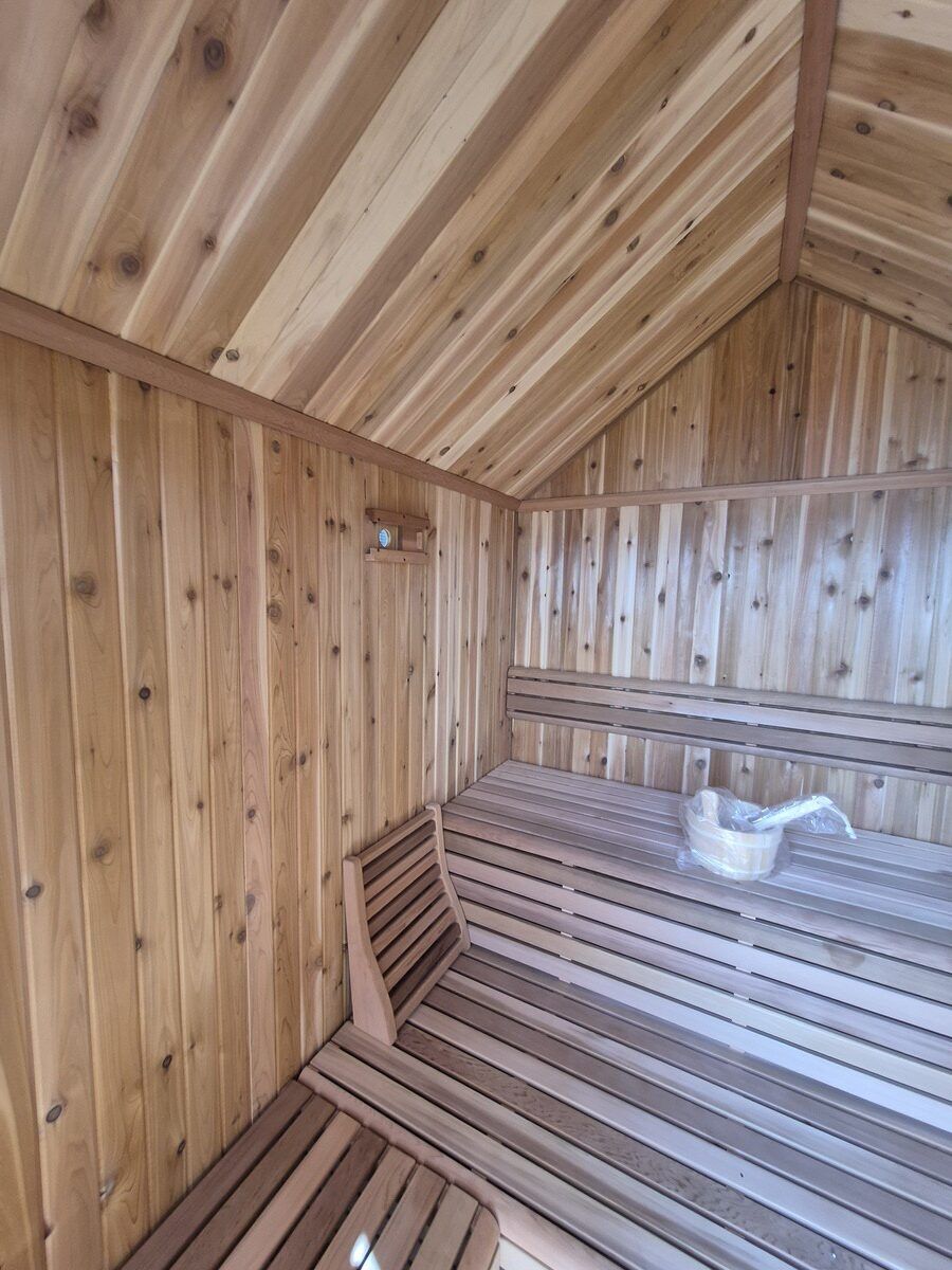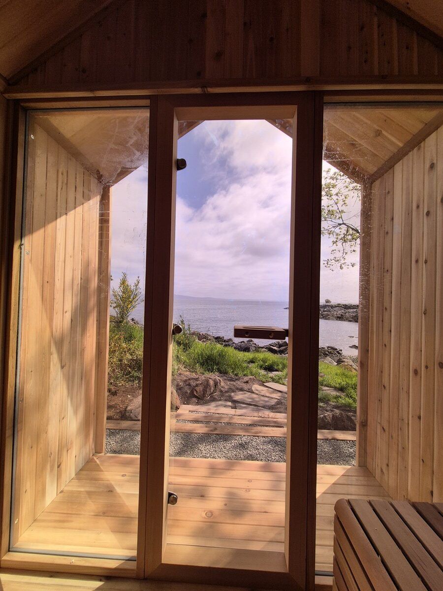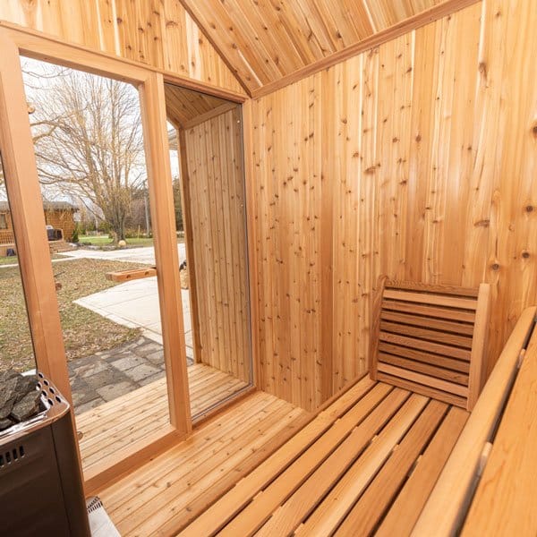 The Backyard Canada Dundalk Leisurecraft PureCube Hudson Outdoor Sauna started the BLACK Collection. The Hudson combines Scandinavian lines with a black metal exterior to create head turning simplicity. Western Red Cedar Interior insulated by 2.5 inches of foam creates a premium sauna experience even in Canada’s cold climate. This sauna model seduces you with its tempered glass front wall and door, embrace the heat of the Pure Cube Hudson sauna on wide 2 level benches. Available with different options to meet your specific needs!