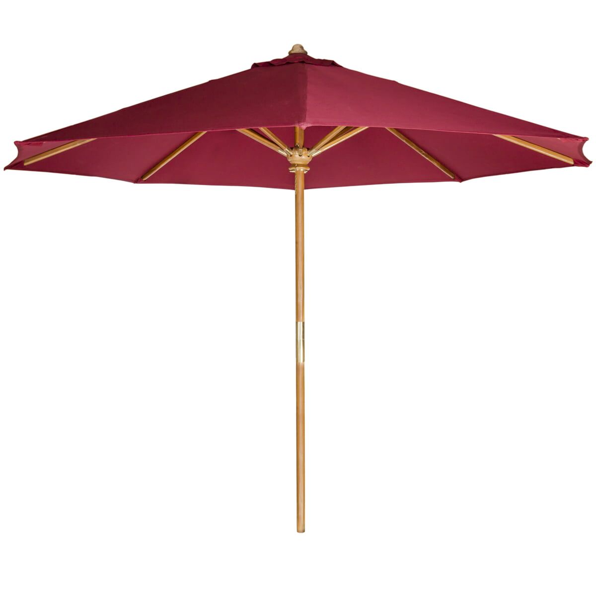 Stylish and solid, our 10-ft Teak Market Umbrella-fts are hand crafted from Indonesian Teak, with a java colored finish, and fitted with solid brass hardware. Our 2-piece pole, reduces the length of the pole by half, making for easy off-season storage. Umbrella canvases have a roof vent allowing wind gusts to pass through, increasing pole stability. Natural oils and rubbers in Teak provide superior weather and insect resistance compared to other woods.