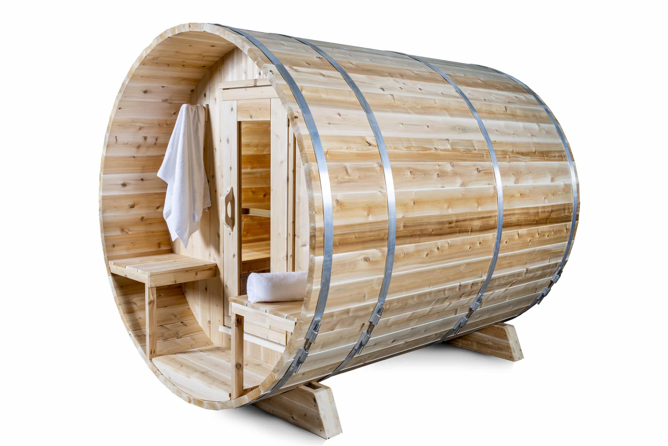 This Canadian Timber Collection Serenity Sauna by Dundalk LeisureCraft is handcrafted from Eastern White Cedar that is lighter in colour and has tight knots in the wood. This Sauna kit comes with solid cedar cradles, aluminum bands with stainless steel hardware and is packaged in a ready to assemble kit. This Sauna comes with a 45cm Front Porch and seats 2-4 people and comes with a making it the perfect backyard getaway for you, your spouse and small family.